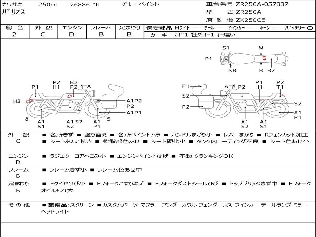 | Номер рамы / VIN | ZR250A-057337 |