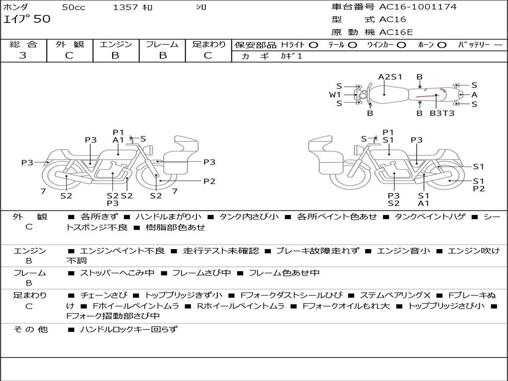 | Номер рамы / VIN | AC16-1001174 |