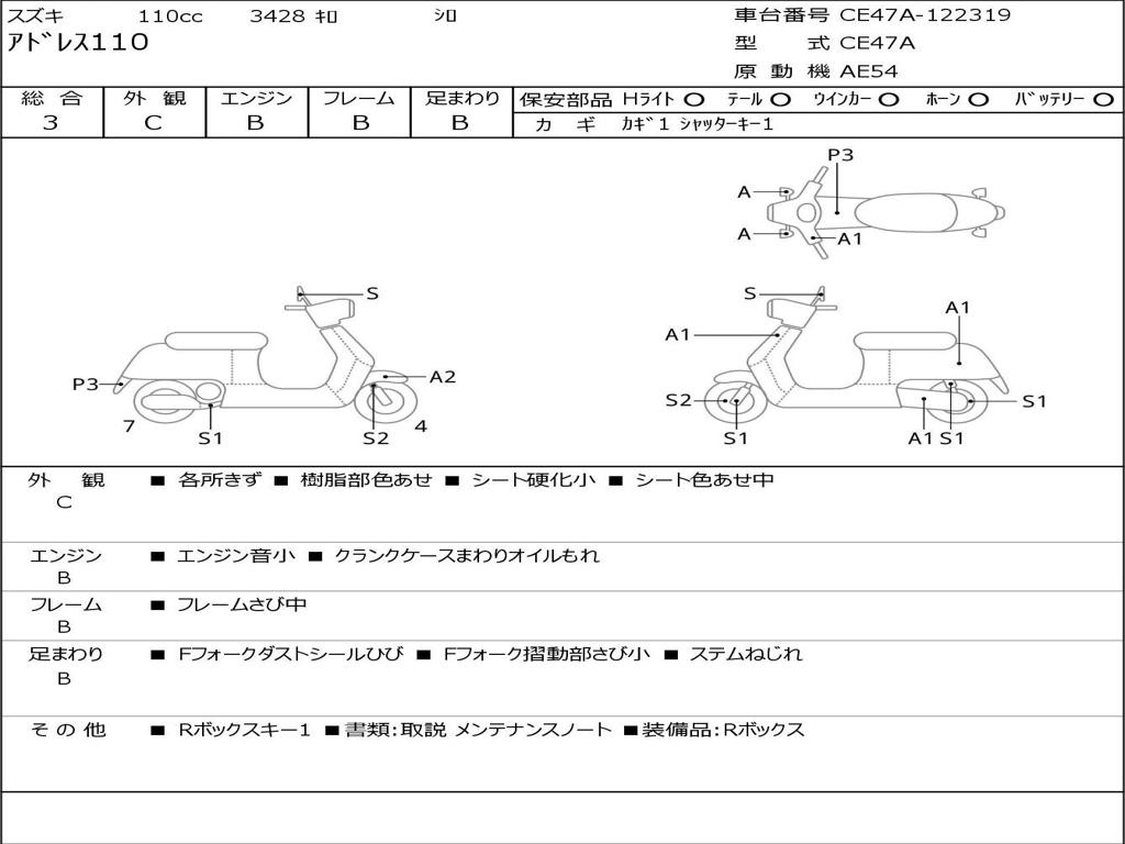 | Номер рамы / VIN | CE47A-122319 |