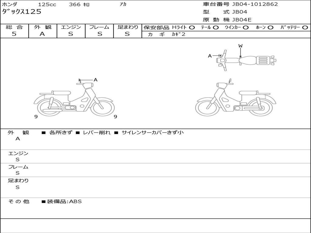 | Номер рамы / VIN | JB04-1012862 |