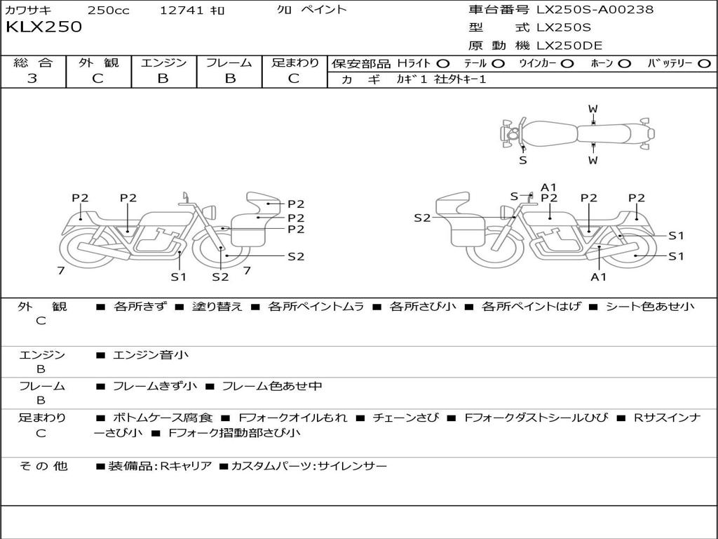 | Номер рамы / VIN | LX250S-A00238 |