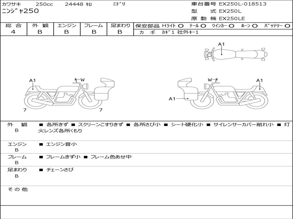 | Номер рамы / VIN | EX250L-018513 |