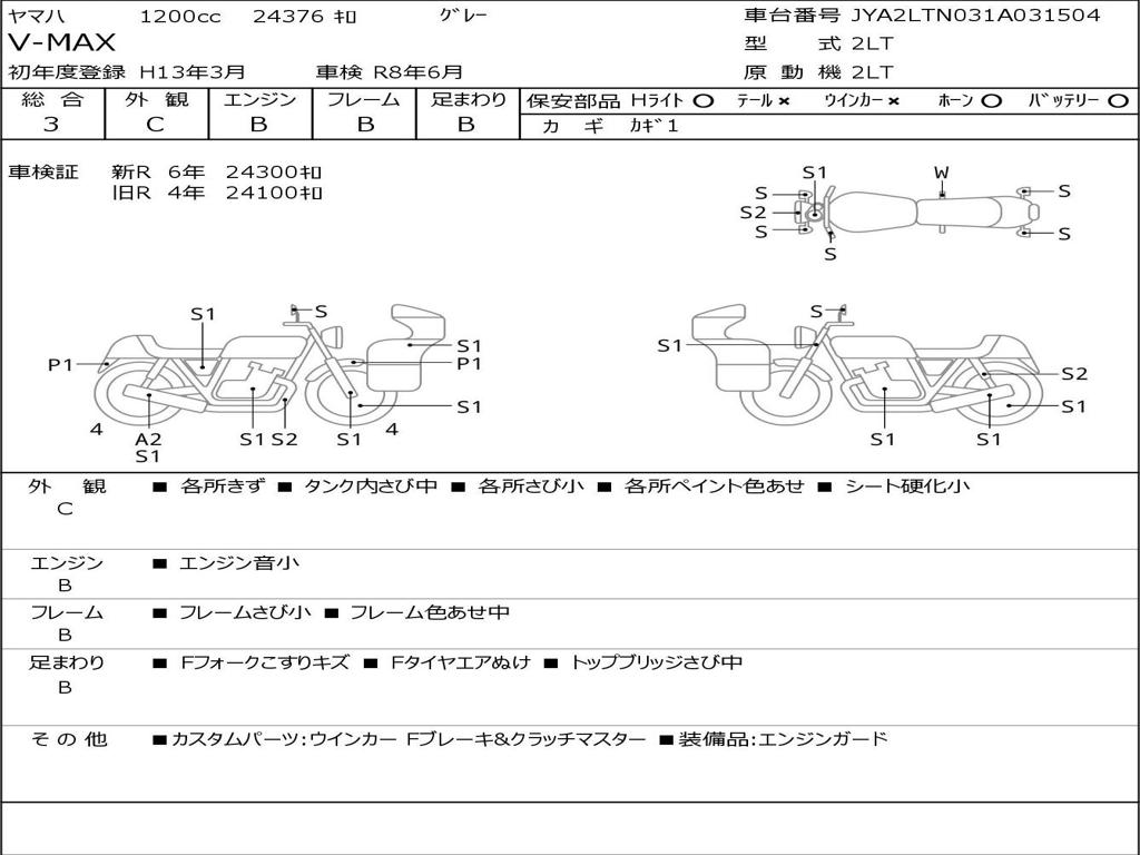 | Номер рамы / VIN | JYA2LTN031A031504 |