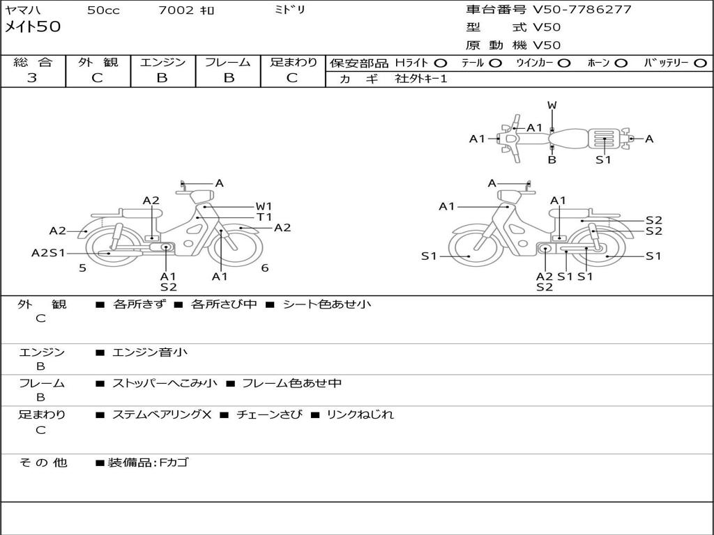 | Номер рамы / VIN | V50-7786277 |