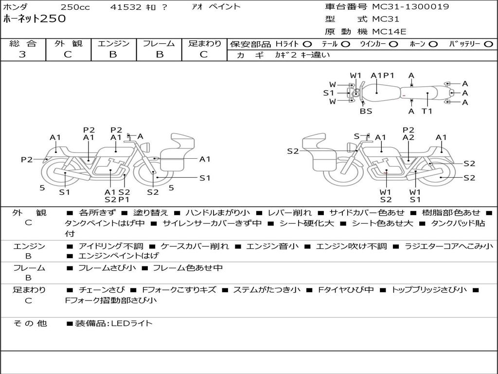 | Номер рамы / VIN | MC31-1300019 |