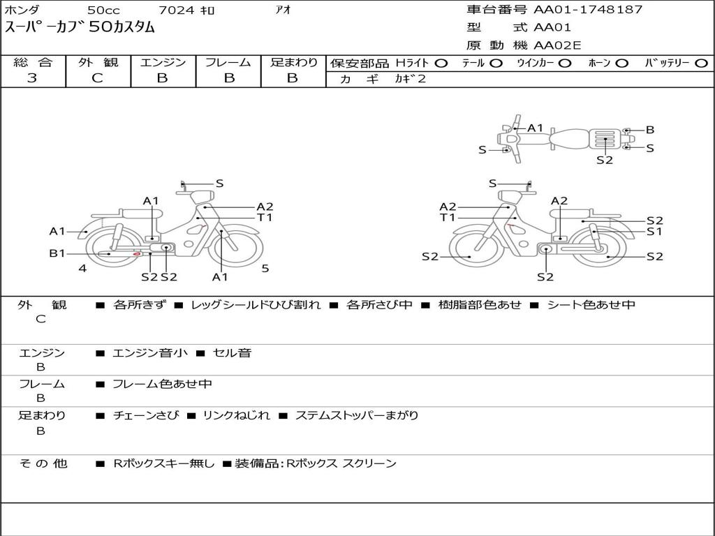 | Номер рамы / VIN | AA01-1748187 |