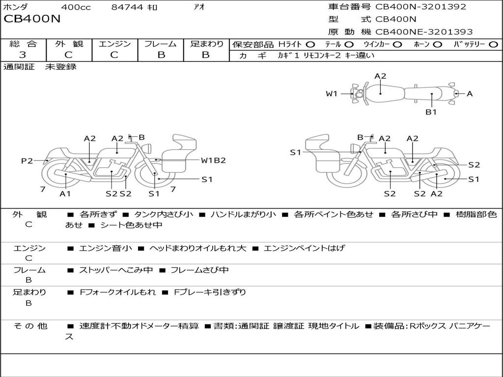 | Номер рамы / VIN | CB400N-3201392 |