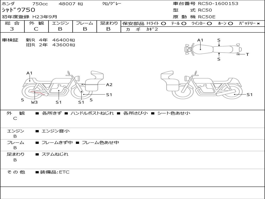 | Номер рамы / VIN | RC50-1600153 |