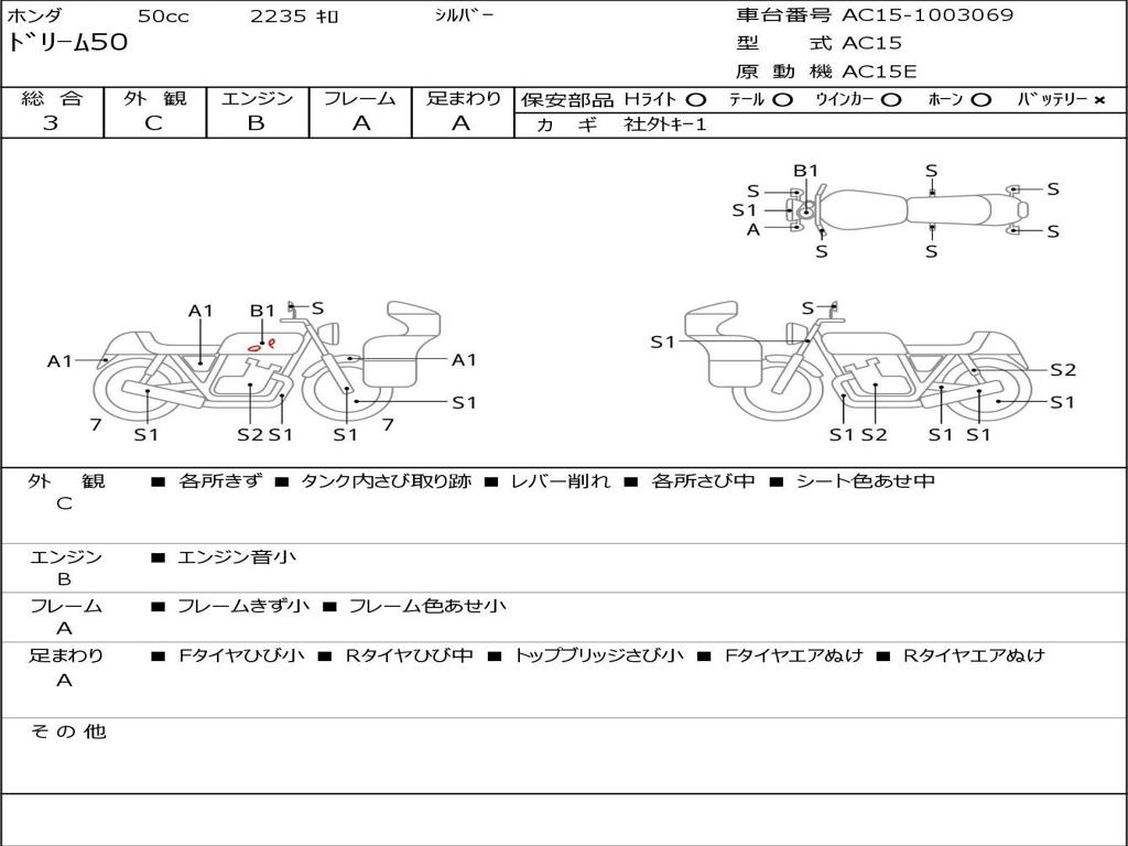 | Номер рамы / VIN | AC15-1003069 |
