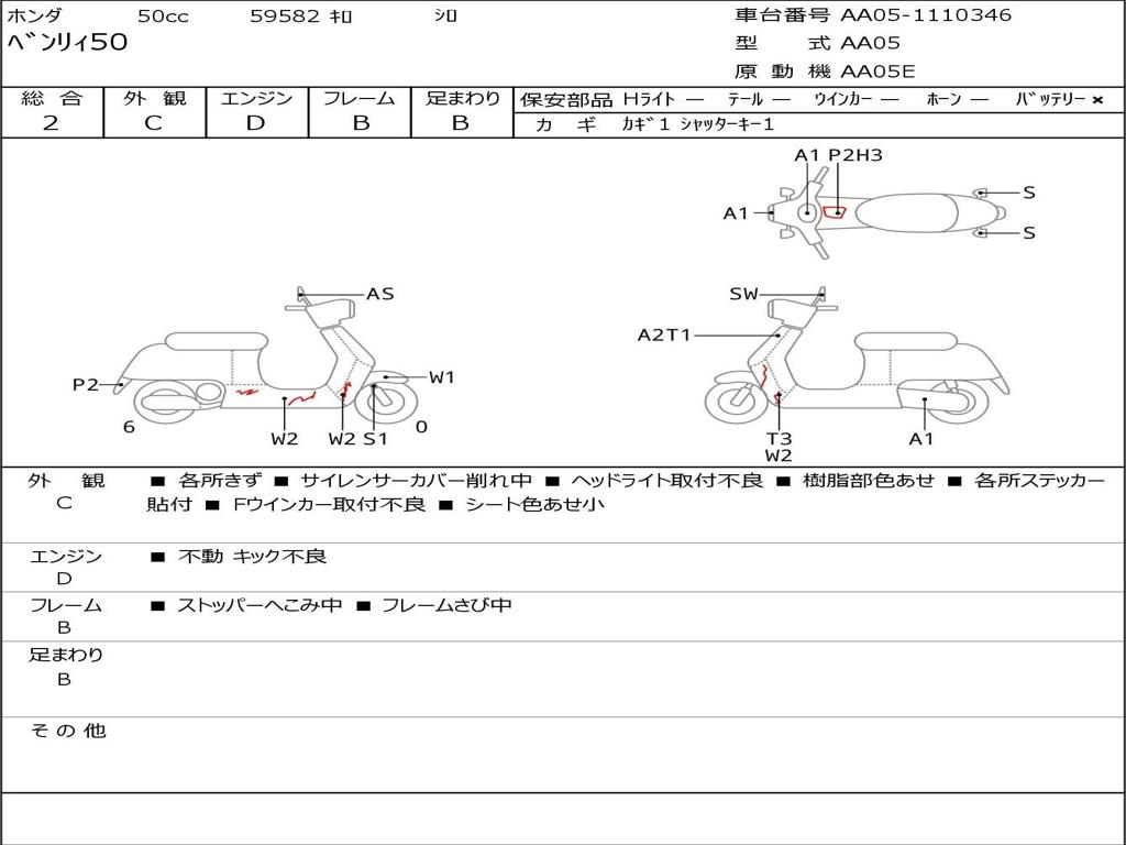 | Номер рамы / VIN | AA05-1110346 |