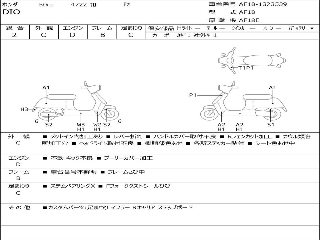 | Номер рамы / VIN | AF18-1323539 |