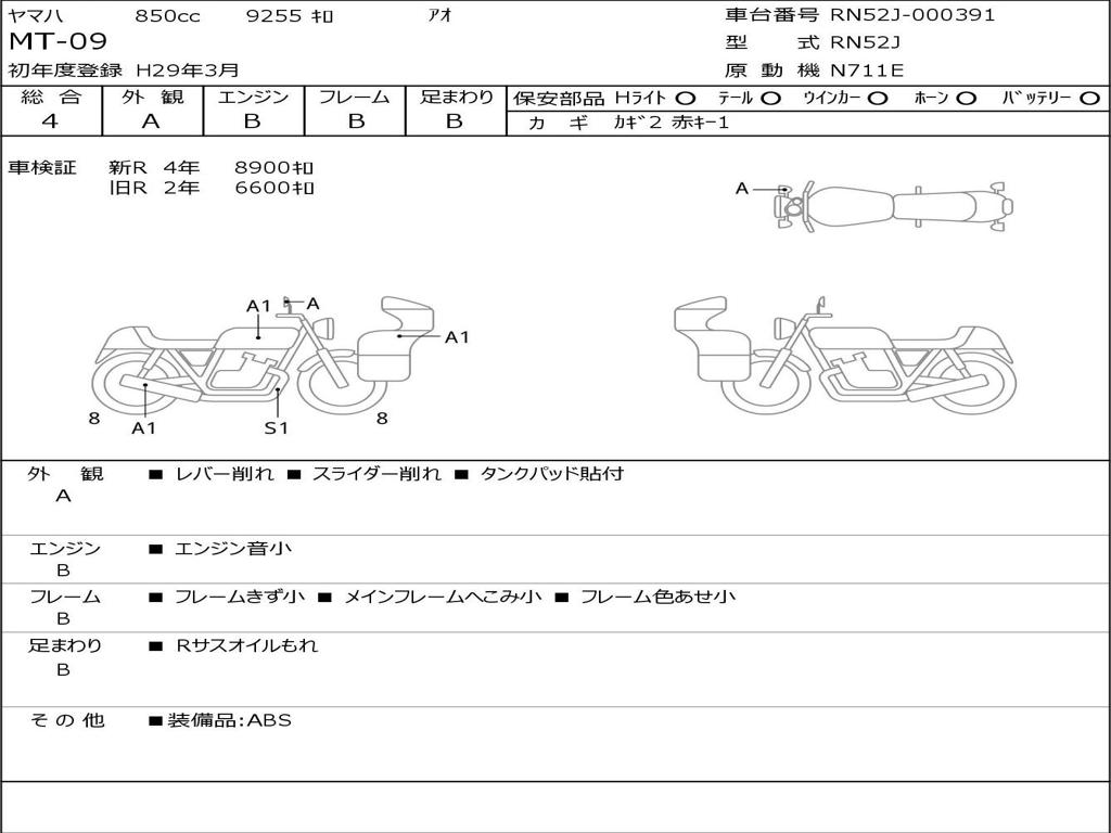 | Номер рамы / VIN | RN52J-000391 |