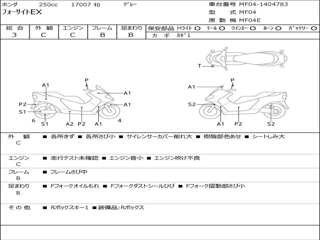 | Номер рамы / VIN | MF04-1404783 |