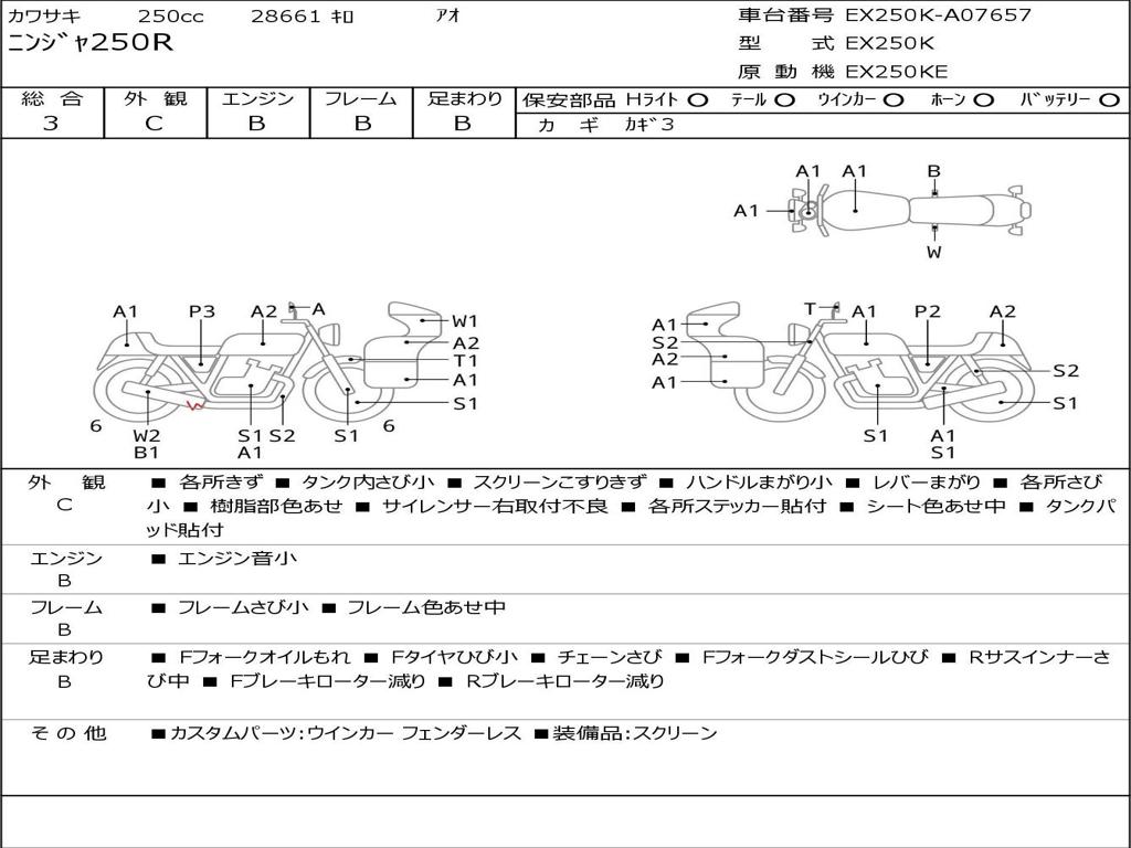 | Номер рамы / VIN | EX250K-A07657 |