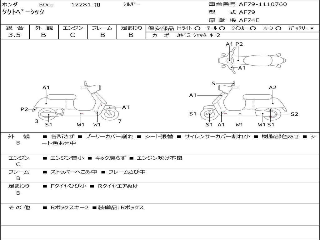 | Номер рамы / VIN | AF79-1110760 |