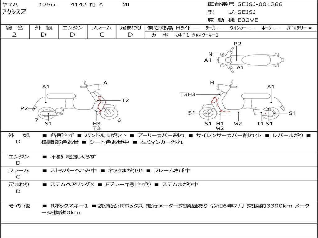 | Номер рамы / VIN | SEJ6J-001288 |