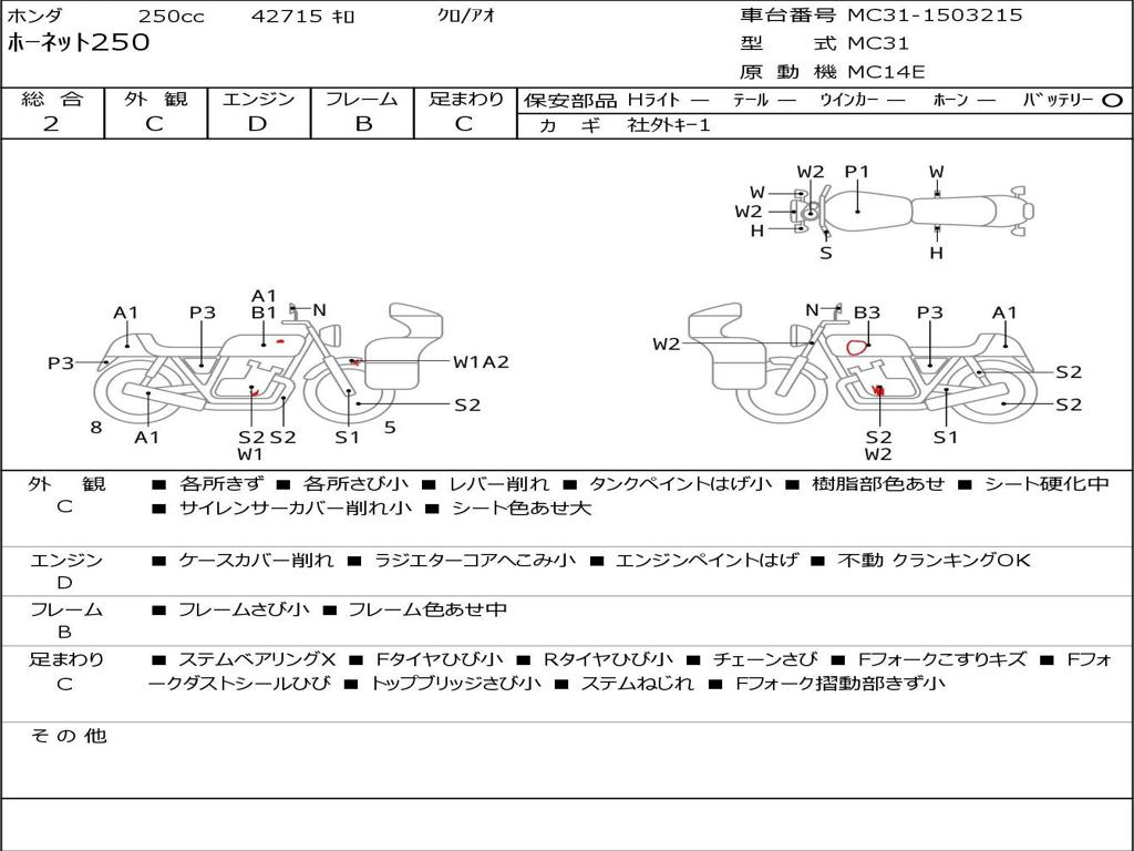 | Номер рамы / VIN | MC31-1503215 |