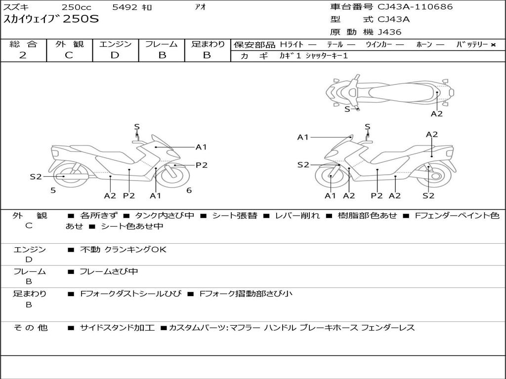 | Номер рамы / VIN | CJ43A-110686 |