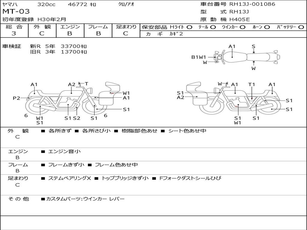 | Номер рамы / VIN | RH13J-001086 |