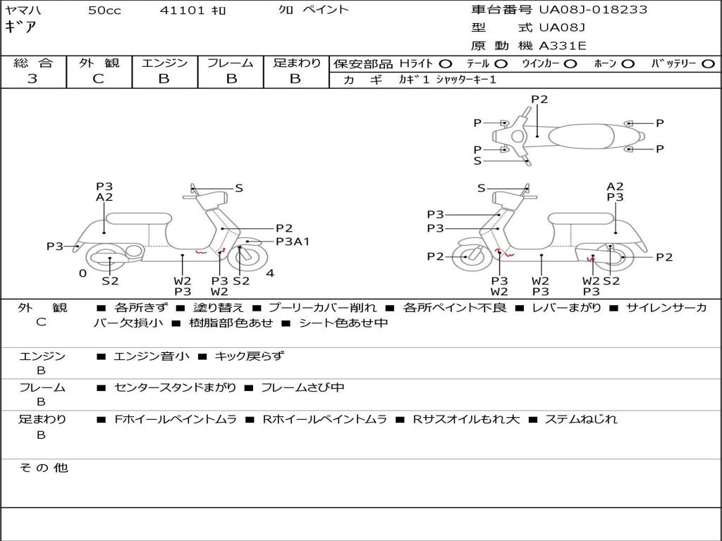 | Номер рамы / VIN | UA08J-018233 |