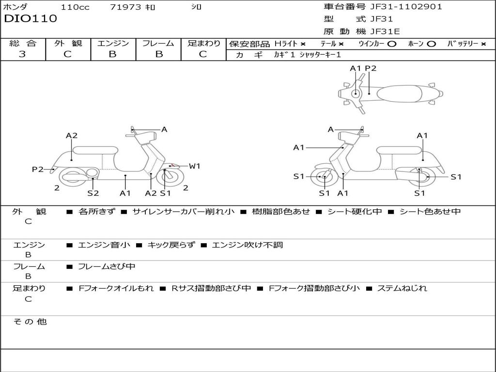 | Номер рамы / VIN | JF31-1102901 |
