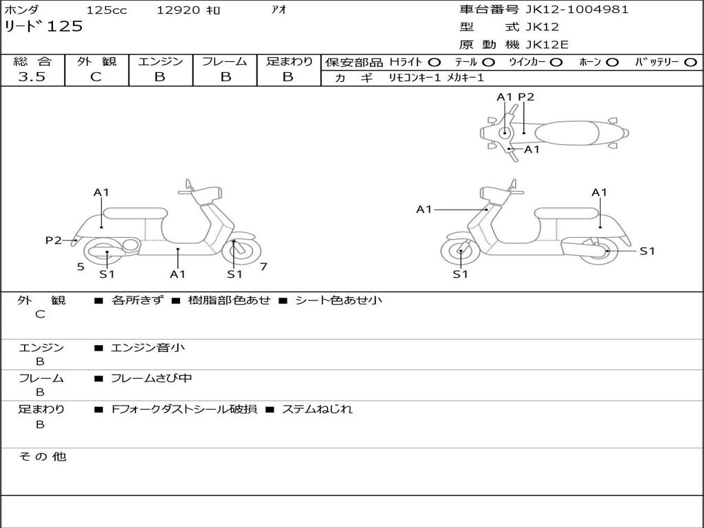 | Номер рамы / VIN | JK12-1004981 |