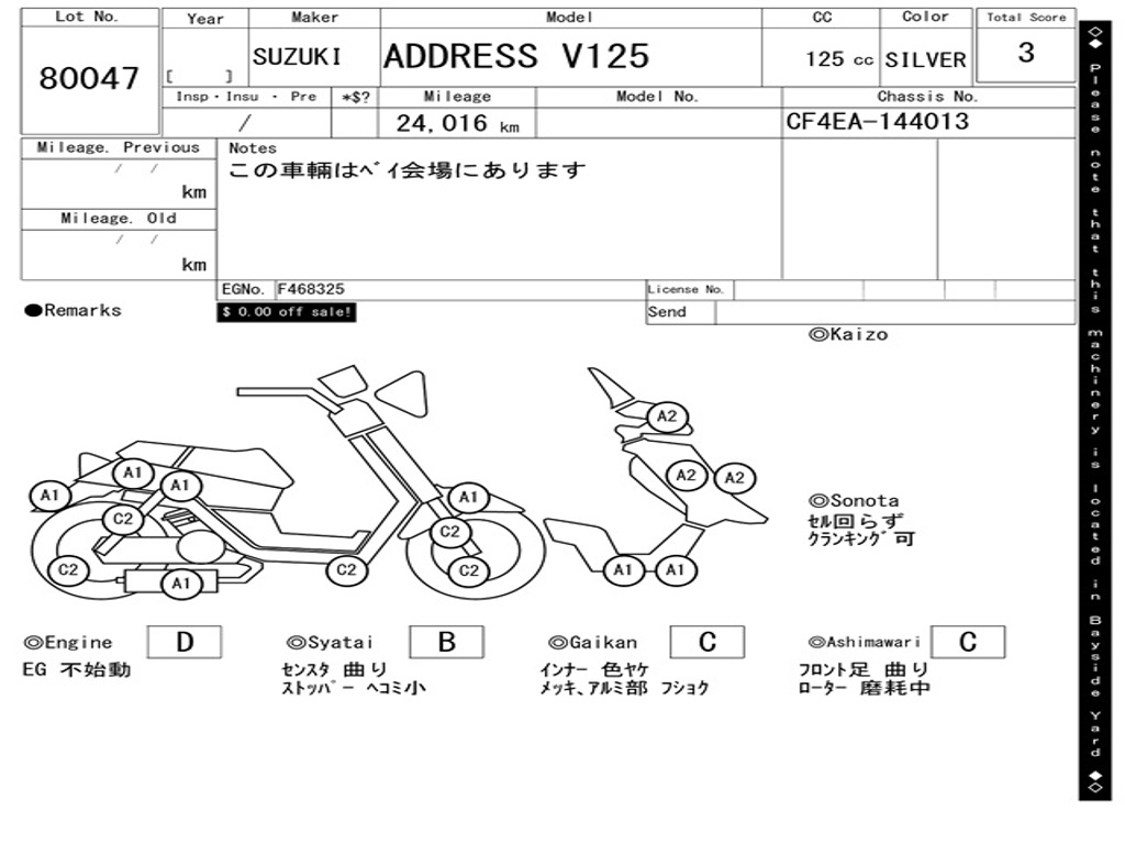| Аукцион | ARAI BAYSIDE |