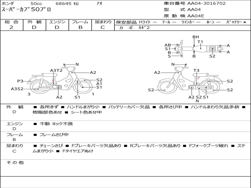 | Номер рамы / VIN | AA04-3016702 |
