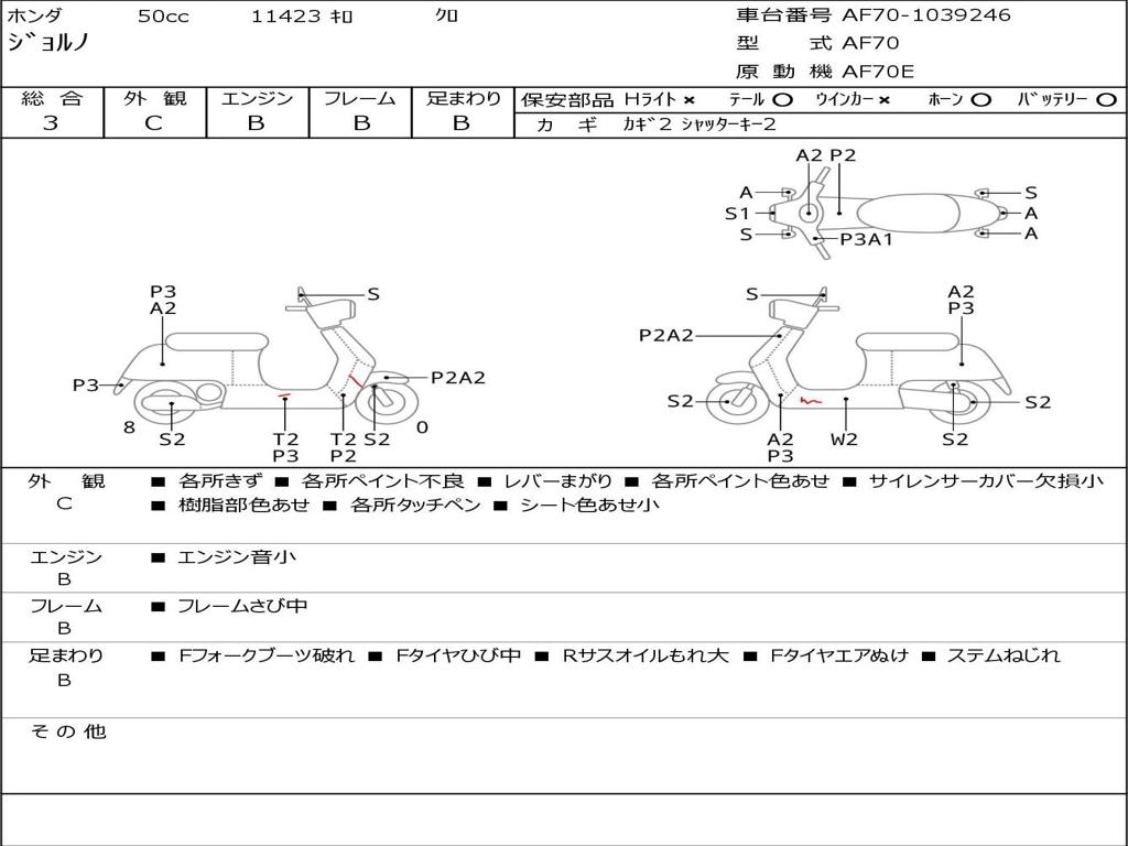 | Номер рамы / VIN | AF70-1039246 |