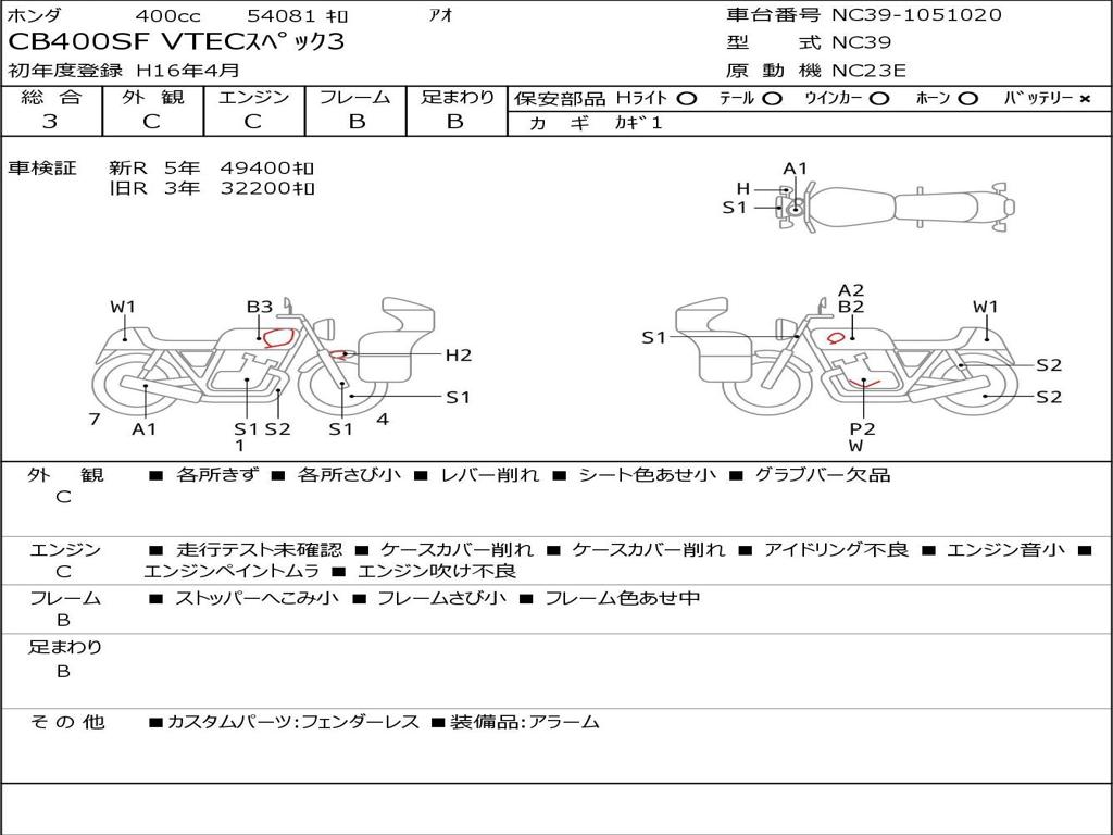 | Номер рамы / VIN | NC39-1051020 |