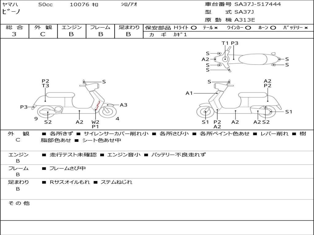 | Номер рамы / VIN | SA37J-517444 |