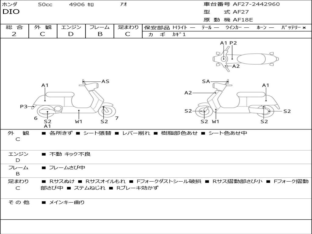 | Номер рамы / VIN | AF27-2442960 |