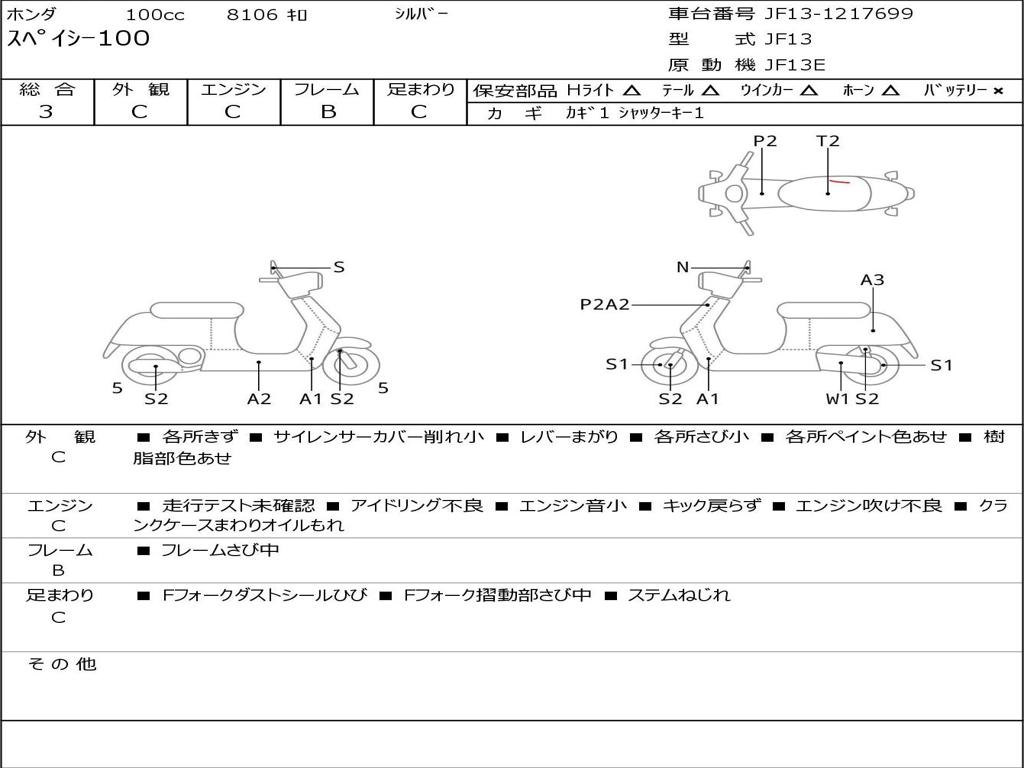 | Номер рамы / VIN | JF13-1217699 |