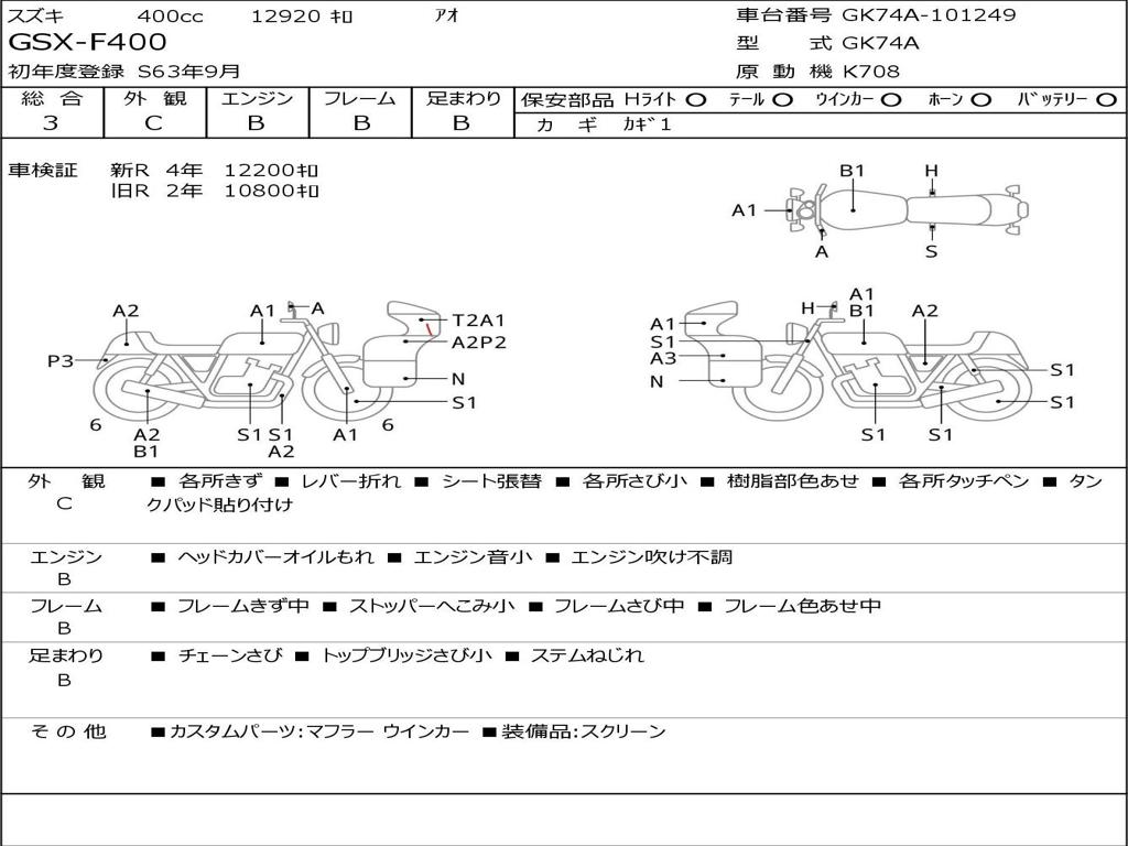 | Номер рамы / VIN | GK74A-101249 |
