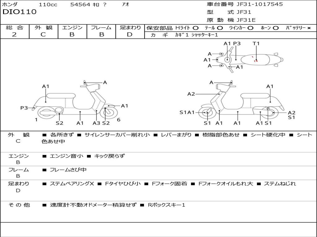 | Номер рамы / VIN | JF31-1017545 |