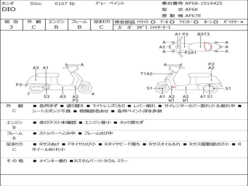 | Номер рамы / VIN | AF68-1014425 |