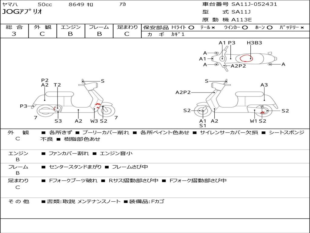 | Номер рамы / VIN | SA11J-052431 |