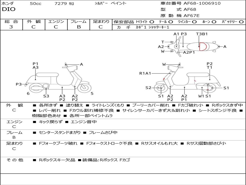 | Номер рамы / VIN | AF68-1006910 |