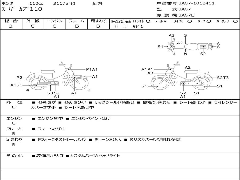 | Номер рамы / VIN | JA07-1012461 |
