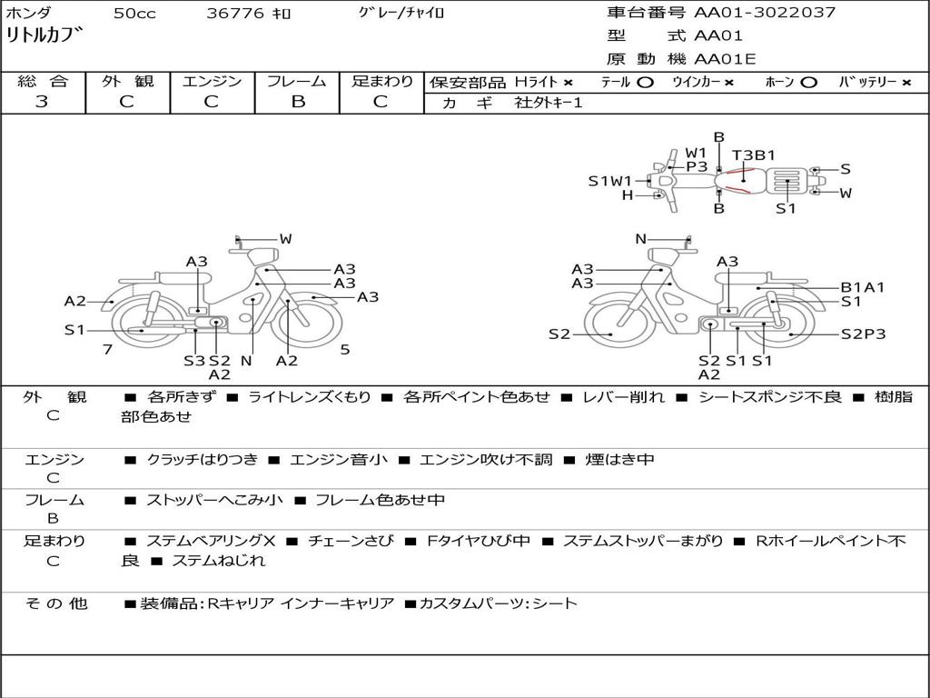 | Номер рамы / VIN | AA01-3022037 |