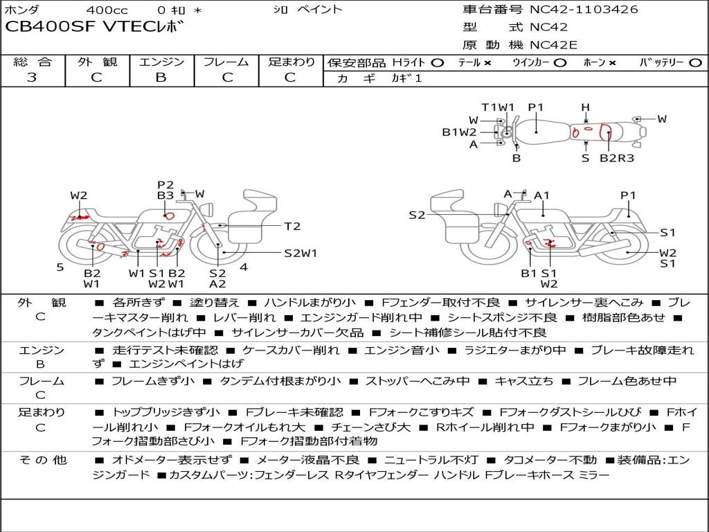 | Номер рамы / VIN | NC42-1103426 |