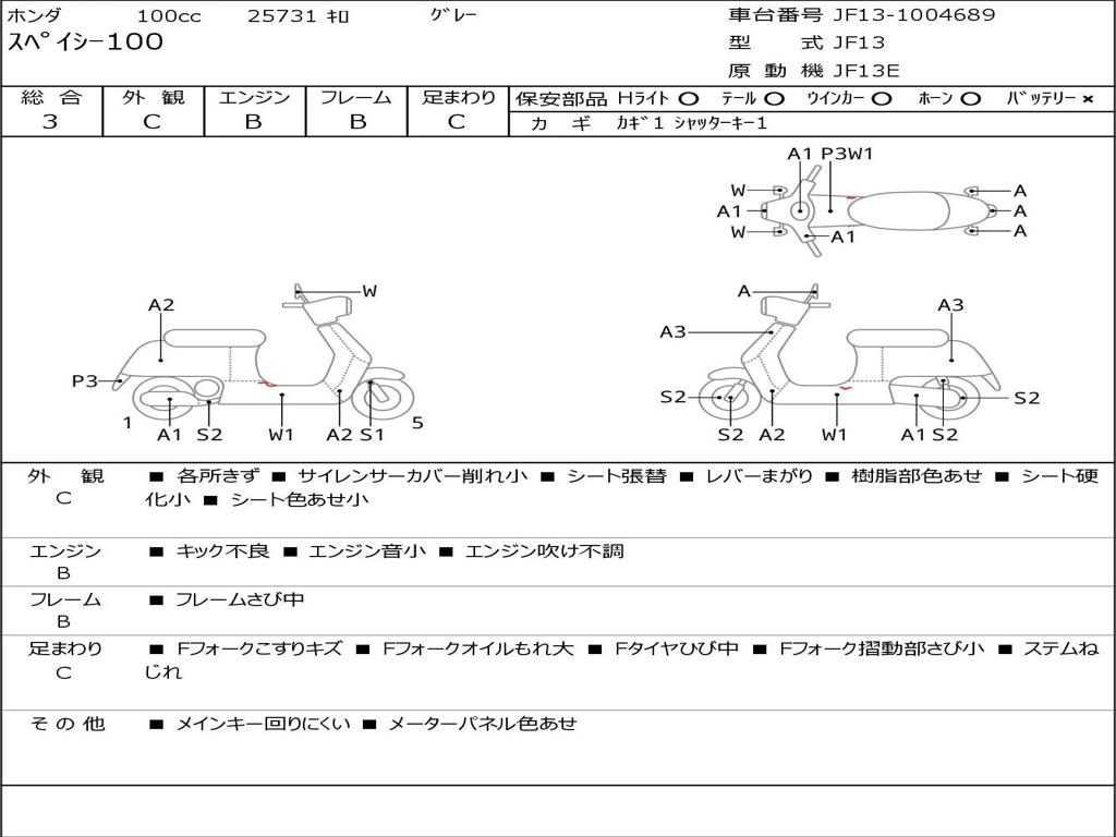 | Номер рамы / VIN | JF13-1004689 |