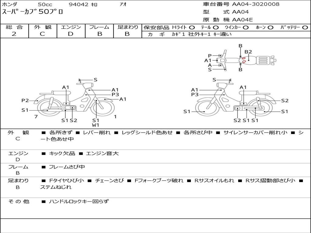 | Номер рамы / VIN | AA04-3020008 |