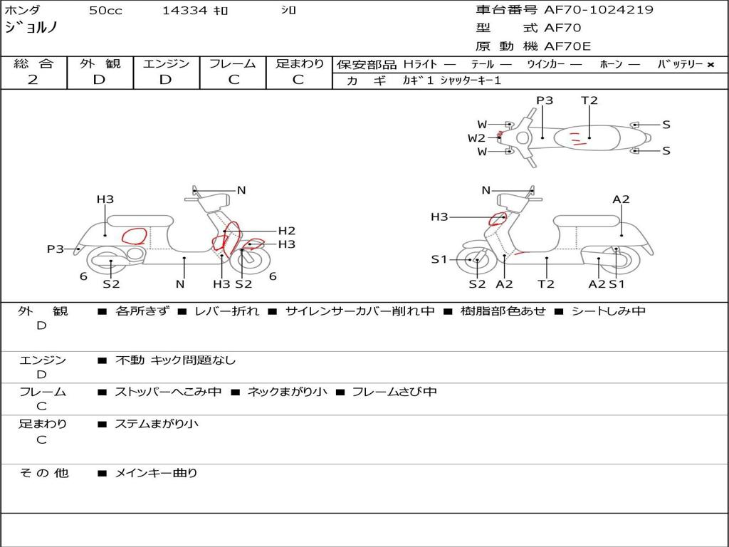 | Номер рамы / VIN | AF70-1024219 |