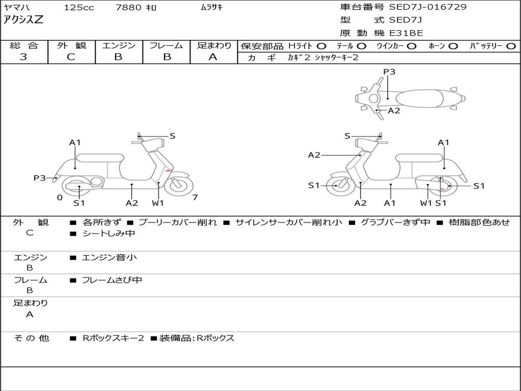 | Номер рамы / VIN | SED7J-016729 |