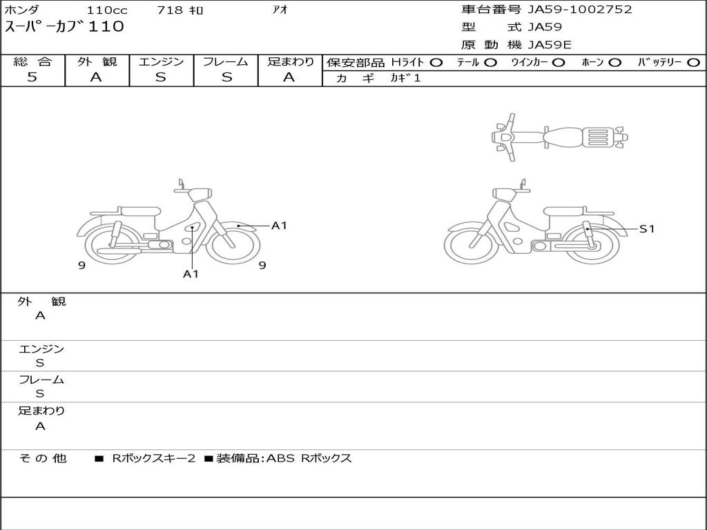 | Номер рамы / VIN | JA59-1002752 |