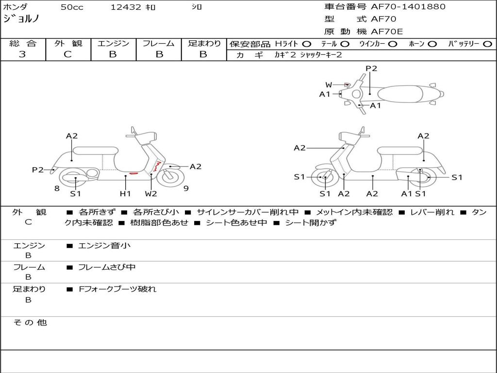 | Номер рамы / VIN | AF70-1401880 |