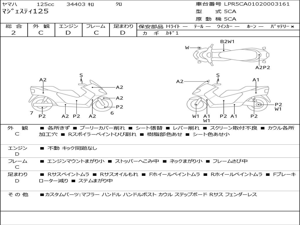 | Номер рамы / VIN | LPR5CA01020003161 |