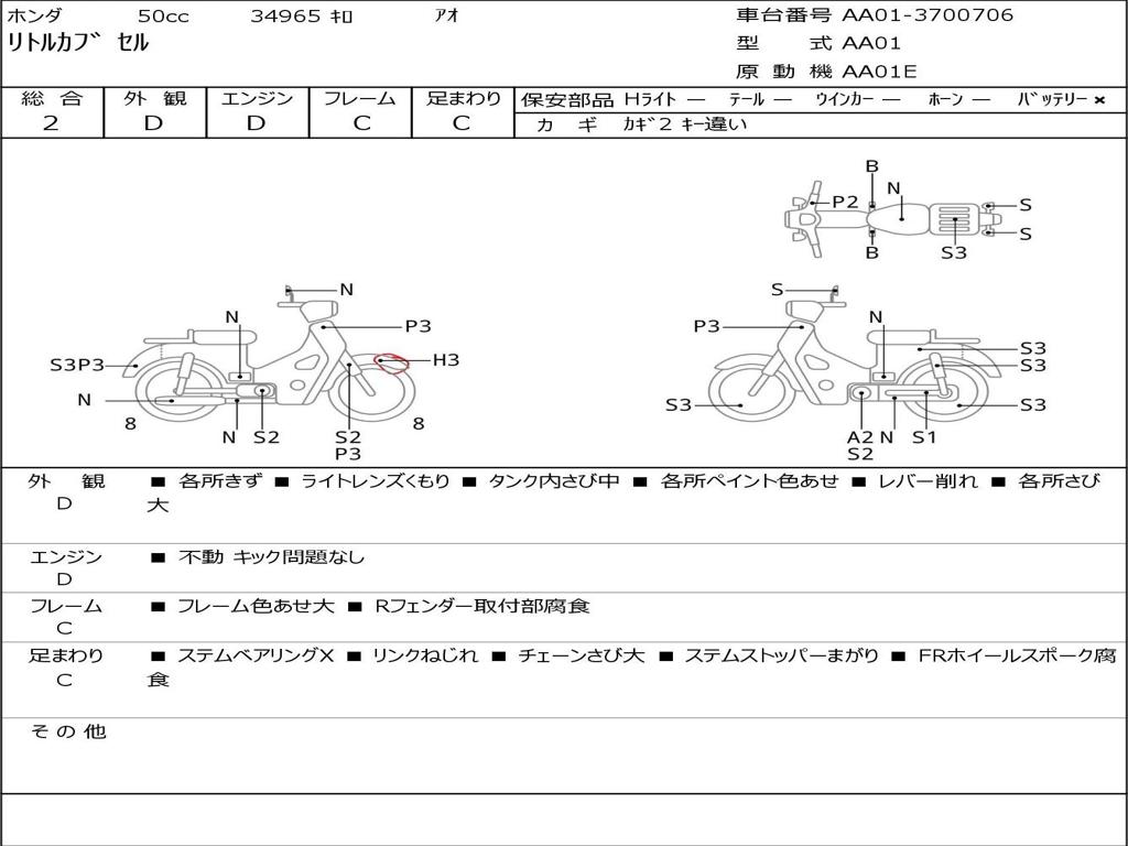 | Номер рамы / VIN | AA01-3700706 |