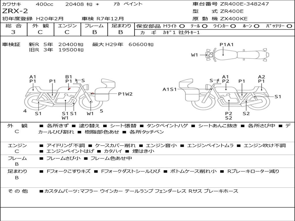 | Номер рамы / VIN | ZR400E-348247 |